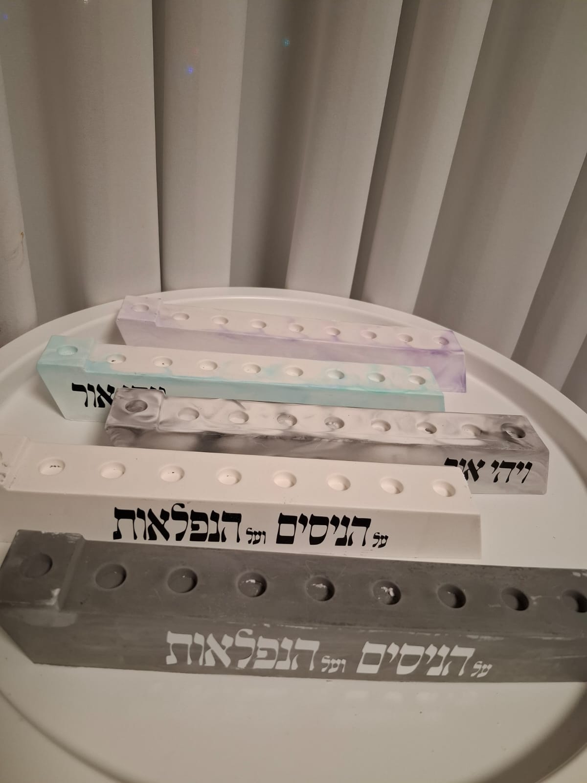 יש לציין האם להוסיף מדבקת ויניל עם הכיתוב "ויהי אור" או עם הכיתוב "על הניסים ועל הנפלאות" או ללא מדבקה. המארז מגיע עם נרות חנוכה, ברכת הדלקת נרות וגפרורים.